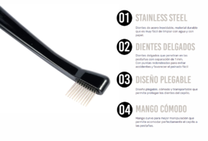 Este cepillo eliminará y arrastrará los molestos grumos de la máscara de pestañas, logrando un maquillaje y acabado más pulcro y con un mayor volumen. Esto permite que al aplicar segundas y terceras capas de máscara puedas lograr una mejor definición.